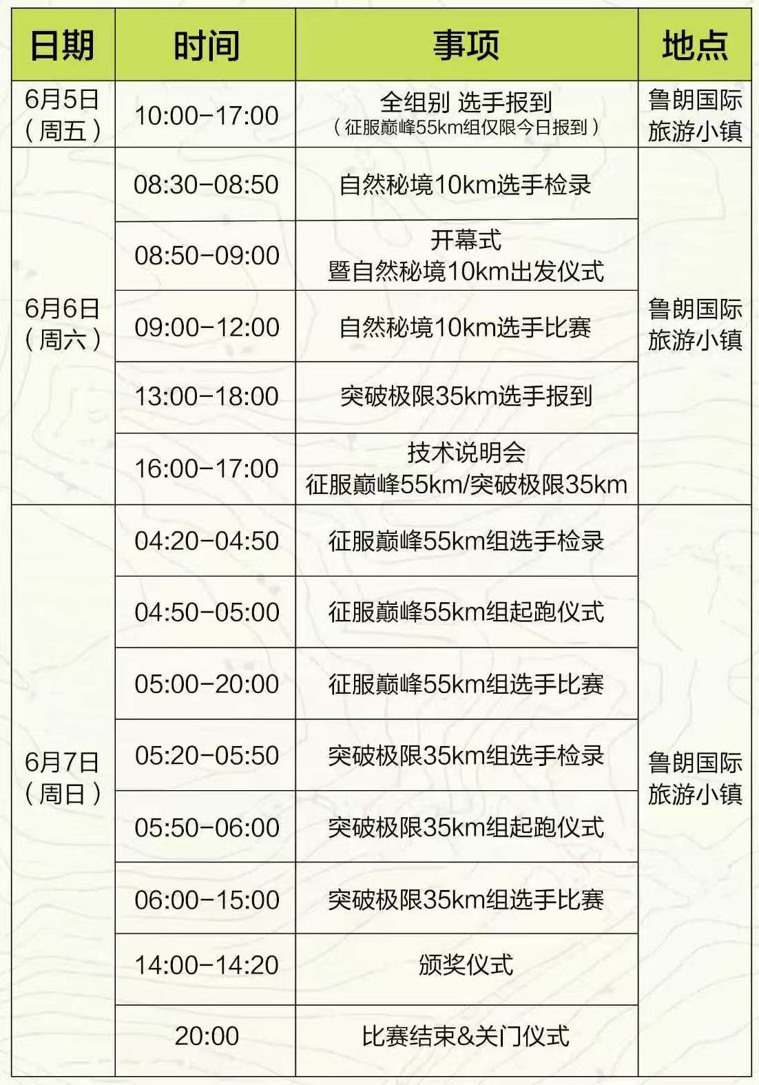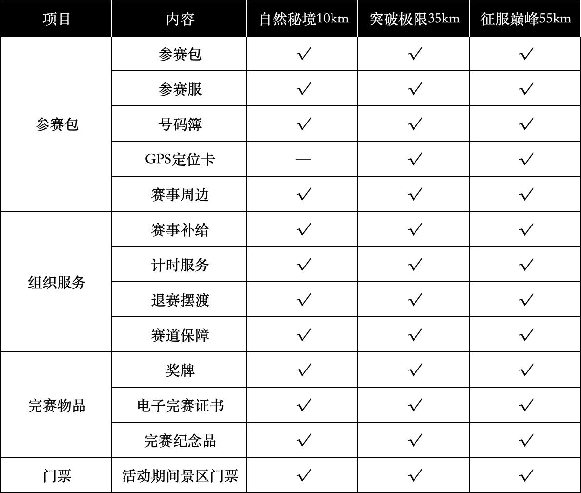 注:凡报名征服巅峰55km选手,均赠送自然秘境10km组别名额,适应海拔和高原环境。