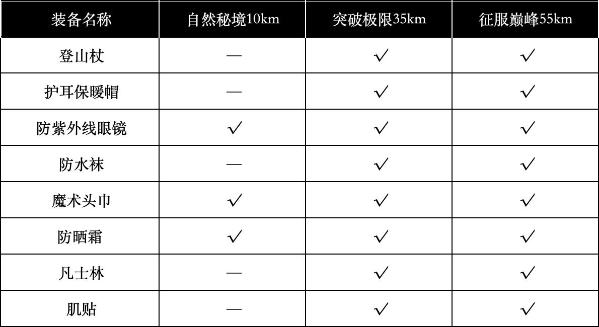 注:报名征服巅峰55km选手赠送自然秘境10km名额者,仅发放10km组别号码簿,不在发放其他10km赛事物资。