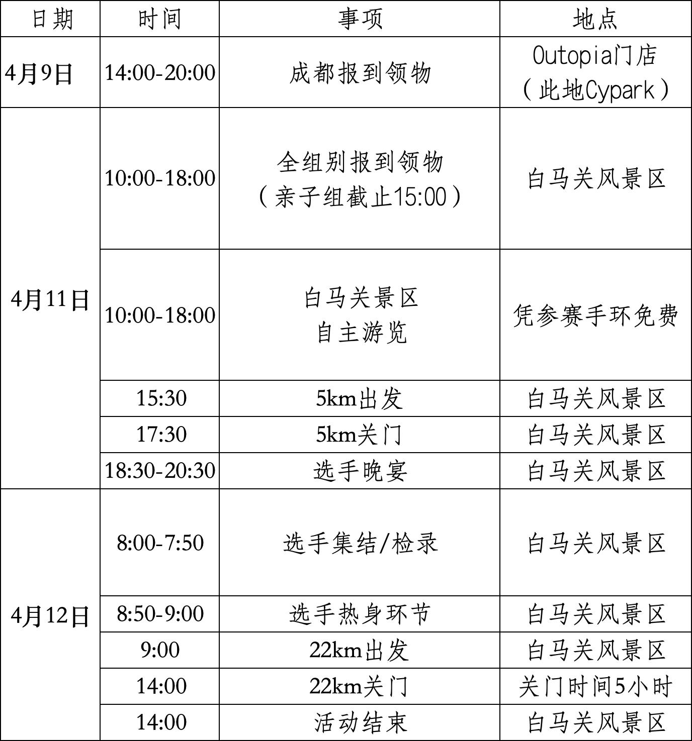 (二)赛事时间:2026年4月11-12日