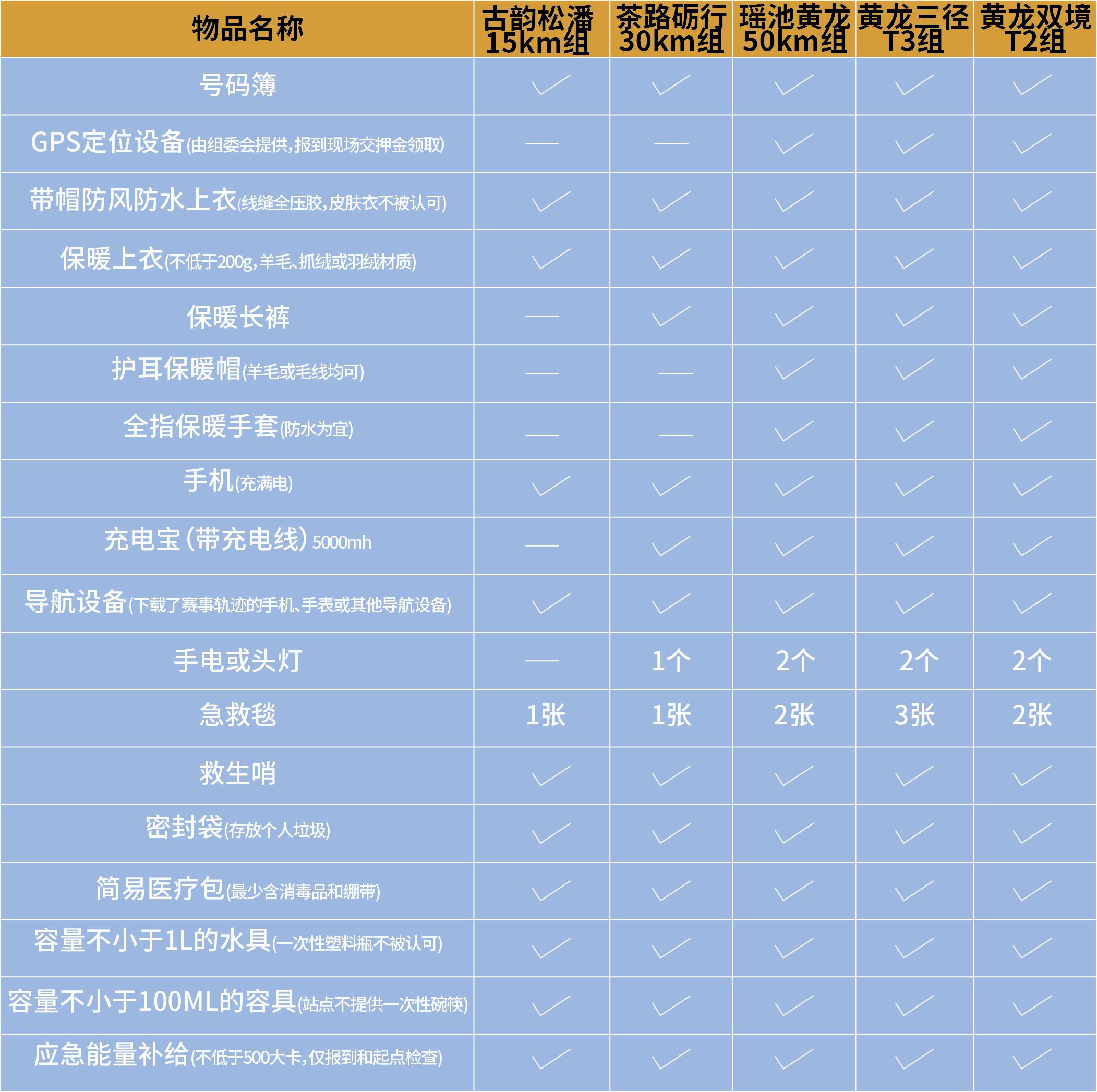 黄龙极限耐力赛部分赛道及检查点车辆无法通行且无网络信号,参赛者需充分认知:受高海拔山地环境的不可预测性制约,专业救援队伍抵达现场的时间可能远超常规预期。赛事期间强制竞赛装备将直接构成选手的生命保障系统,务必全程携带。
